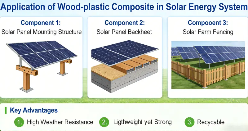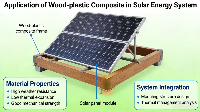 木材とプラスチックの複合材(WPC)は、環境に優しく、耐候性、軽量、メンテナンスの手間がかからず、加工が容易な特性により、太陽光発電(PV)マウント、水上発電所、太陽光発電建物の統合、集中太陽光発電(CSP)貯蔵などの太陽エネルギーシステムの主要な材料として浮上しています。伝統的な金属や木材の材料が徐々に置き換えられています。